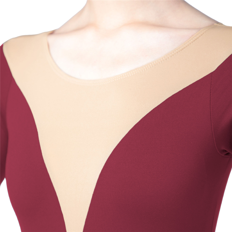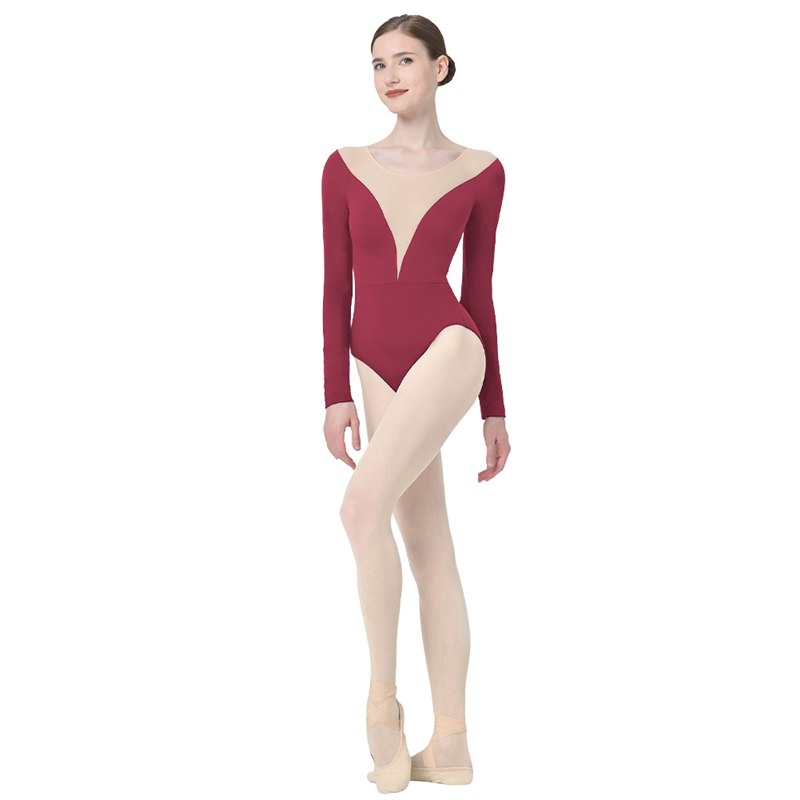 Elegant Long Sleeve Wine Red Ballet Leotard For Women